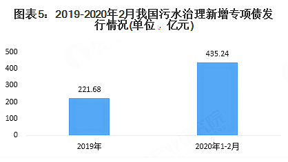 數據顯示,2020年1-2月,我國政府在污水治理領域發行的專項債規模為435.24億元,已超過2019年全年的發行規模??梢?,在未來幾年,污水處理行業的市場化進程將進一步加快。
