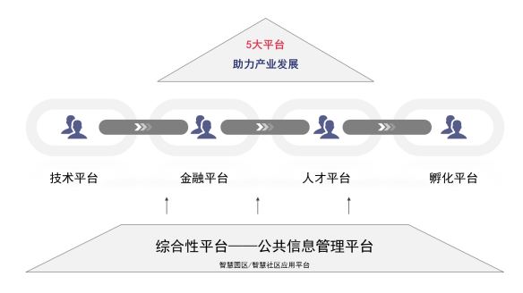 在構建服務體系時,通過構建不同類別的服務平臺,結合產業發展需求,打造技術、金融、人才、孵化和綜合服務五大平臺,為企業提供包括交流培訓、人力資源、中介代理、信息與宣傳、政策支持等全方位的生態化產業服務。