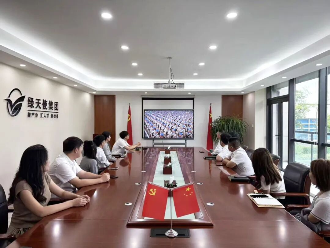 為銘記歷史、緬懷先烈、珍愛和平、開創未來,進一步傳承紅色基因,弘揚愛國情懷,凝聚奮進力量,綠天使黨支部組織園區黨員集中觀看“九三閱兵”儀式直播,共同感受這一莊嚴時刻。